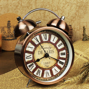 This is a vintage European American classical bell clock with a full body of bronze red color metal. A smooth surface of metal with its unique kind of Roman numeral design allows it to be one of the outstanding classic bell clock. With its perfect mechanical Quartz allows you to enjoy it as the most retro classic decoration with the adding of the 2 luxury bronze red bell on top of it with an European American vintage style of coated paper and the glass mirror cover on the clock's hands, it is able to upgrade your rooms to a higher level. Let this beautiful advance classical design clock to be placed beside your bedside too. It is a mute clock that every ticks will seconds of mechanical move without making any noise while its alarm is soft and clear.