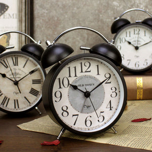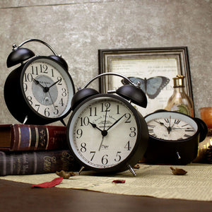 This is a vintage American classical bell clock with a full body of black color metal. A smooth surface of metal with its unique kind of numeral design of Arabic or Roman allows it to be one of the outstanding classic bell clock. The two black color bell with the vintage white coated clock number, make it looks like a Mickey Mouse. With its perfect mechanical Quartz allows you to enjoy it as the most retro classic decoration with the adding of the 2 luxury bell on top of it with an European American vintage style of coated paper and the glass mirror cover on the clock's hands, it is able to upgrade your rooms to a higher level. Let this beautiful cute little Mickey Mouse like of classical design clock to be placed beside your bedside too. It is a mute clock that every ticks will seconds of mechanical move without making any noise while its alarm is soft and clear.