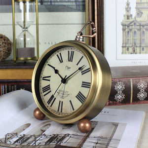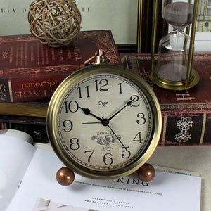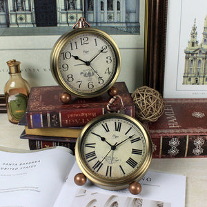 This is a vintage European classical clock with a full body of gold color metal. A smooth surface of metal with its unique kind of numeral design of Roman or Arabic allows it to be one of the outstanding classic clock. With its perfect mechanical Quartz allows you to enjoy it as the most retro classic decoration with the adding of the 2 luxury copper ball base with an European vintage style of coated paper and the glass mirror cover on the clock's hands, it is able to upgrade your secret rooms to a higher level. Let this beautiful advance classical design clock to be placed beside your bedside too. It is a mute clock that every ticks will seconds of mechanical move without making any noise while its alarm is soft and clear.