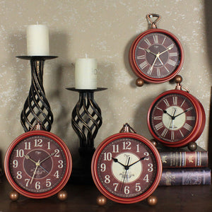 This is a vintage European classical clock with a full body of red color metal. A smooth surface of metal with its unique kind of numeral design of Roman or Arabic allows it to be one of the outstanding classic clock. With its perfect mechanical Quartz allows you to enjoy it as the most retro classic decoration with the adding of the 2 luxury copper ball base with an European vintage style of coated paper and the glass mirror cover on the clock's hands, it is able to upgrade your secret rooms to a higher level. Let this beautiful advance classical design clock to be placed beside your bedside too. It is a mute clock that every ticks will seconds of mechanical move without making any noise while its alarm is soft and clear.