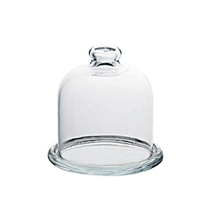 Cakes, fruits, and cheeses are covered by a transparent, handcrafted glass dome on a glass server. Covered server presents appetizers and desserts beautifully while still preserving and keeping them fresh. The dome's integrated glass knob makes it simple to remove. Every glass dome will be subtly different due to its handmade design.