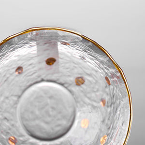 Especially impress your Japanese guests by serving them drinks in these exquisite, Kinpaku Zen outlined in gold foil and gold rim whiskey glasses. This is perfectly made of thickened soda-lime glass, which is melted at high temperature and made by centrifugal force. Ideal for sharing a toast with family or friends on any occasion! Kanpai!