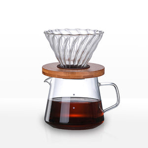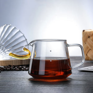 A sleek coffee server made of heat-resistant borosilicate glass with measurements etched on it. Slow Coffee Style combines the pleasures of pour over coffee with the pleasures of a slow, relaxing passage of time. Organic shapes, soothing colors, and soothing textures are intended to help you relax. The pieces are well-suited to spaces with a soothing ambiance. The set adds dimension to your morning coffee routine.