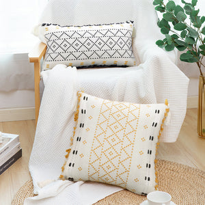 A pillow in black, yellow, and natural cotton have just the right amount of Nordic flair. This collection was handcrafted by professional artisans and features the region's signature boldly angular geometry. Combine the pillows with our other globally influenced pillows in soft tones.