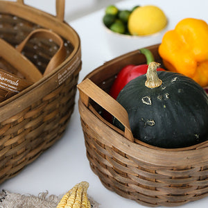 Artists hand braid and coil strands from fir woodchip, a highly sustainable Asian hand-woven carbonized chip storage basket. It's ideal for serving or putting together a tabletop display.