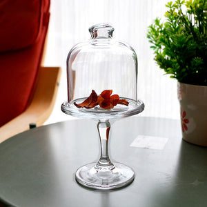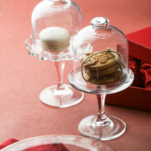 The lidded glass pedestal gives cakes, pies, and pastries a lovely perch while keeping them fresh for days. When the cover is twisted, the piece turns into a punch cup with elegant shape.